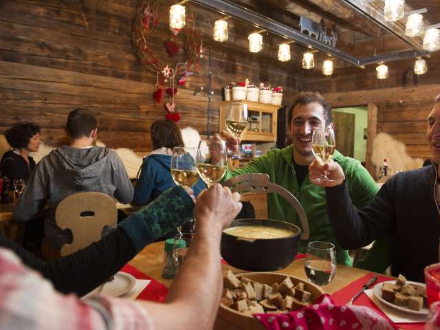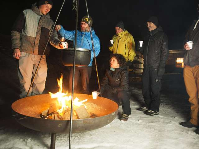 - Hüttenromantik am Abend mit Candlelight-Fondue oder –Raclette und einem romantisch beleuchteten Winterwanderweg.