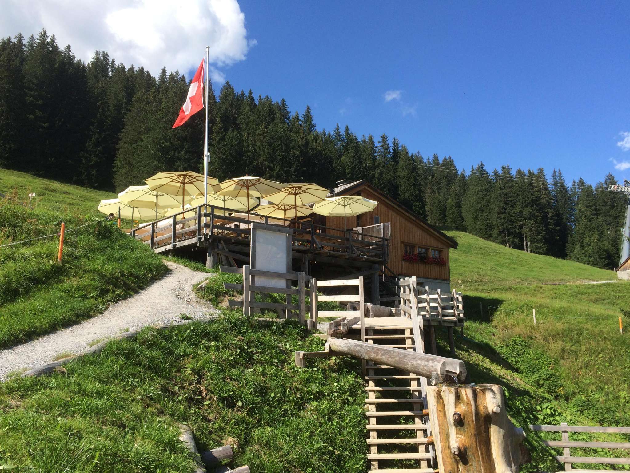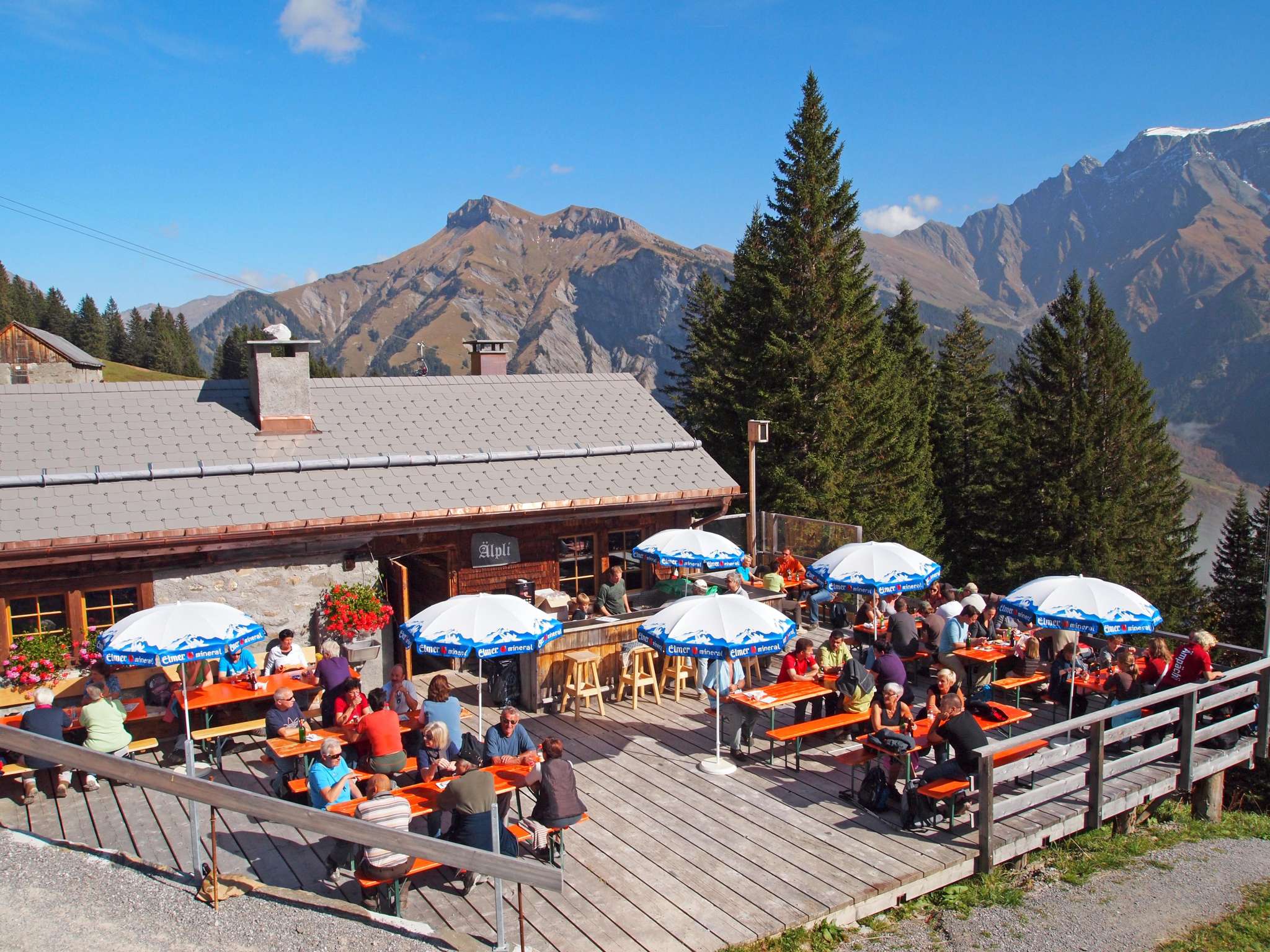 Das urchige Bergbeizli Älpli oberhalb der Gondelbahn besitzt Alphütten Charme und ist zu jeder Jahreszeit gut mit einem kurzen Fussmarsch von der Bergstation der Gondelbahn erreichbar. Als ehemaliger umgebauter Stall mit viel Geschichte strahlt es viel Gemütlichkeit aus. Draussen lädt eine sonnige Terrasse mit gemütlicher Bar und Liegestühlen zum Verweilen ein.
