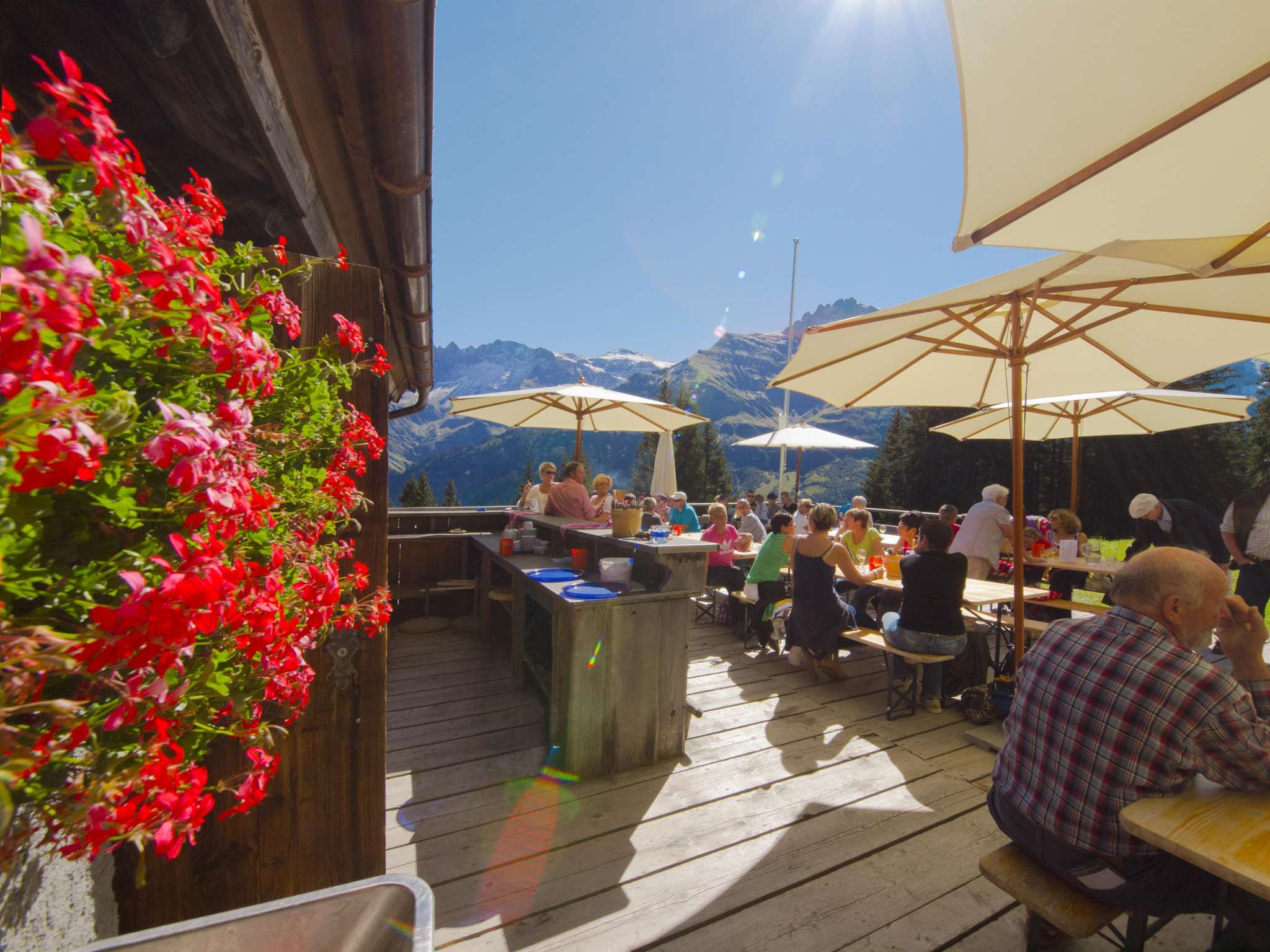 Lassen Sie sich in der frischen Bergluft von regionalen Köstlichkeiten verwöhnen und geniessen Sie die Aussicht auf ein fantastisches Bergpanorama, weitab von Alltagshektik.