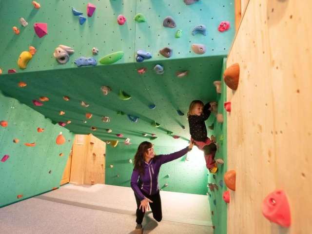 Du kannst dich in der neuen Spielhalle mit Kletterstationen, Bällebad und noch mehr Attraktionen austoben und in der Boulderhalle Kletterspass geniessen.