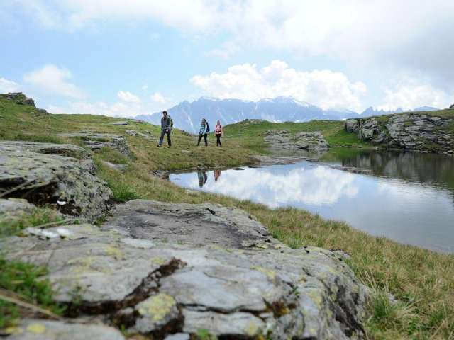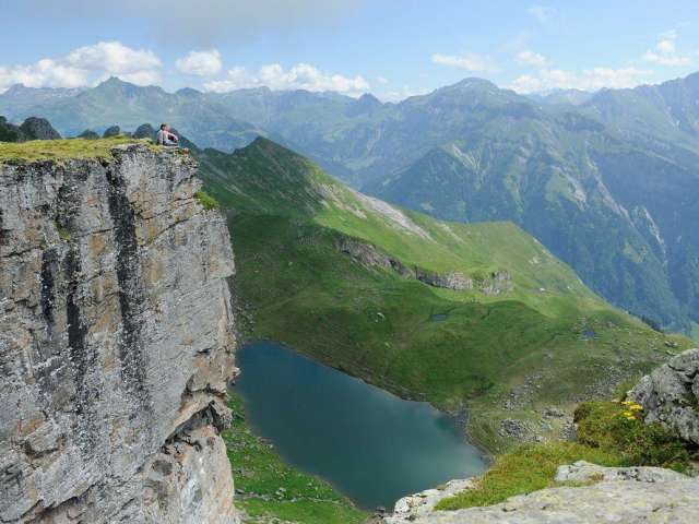 Die ungewöhnliche Lage des Kleinsees auf einem Plateau zusammen mit der fantastischen Aussicht machen den Berglimattsee im Freibergkärpf als Ausflugsziel besonders interessant.
