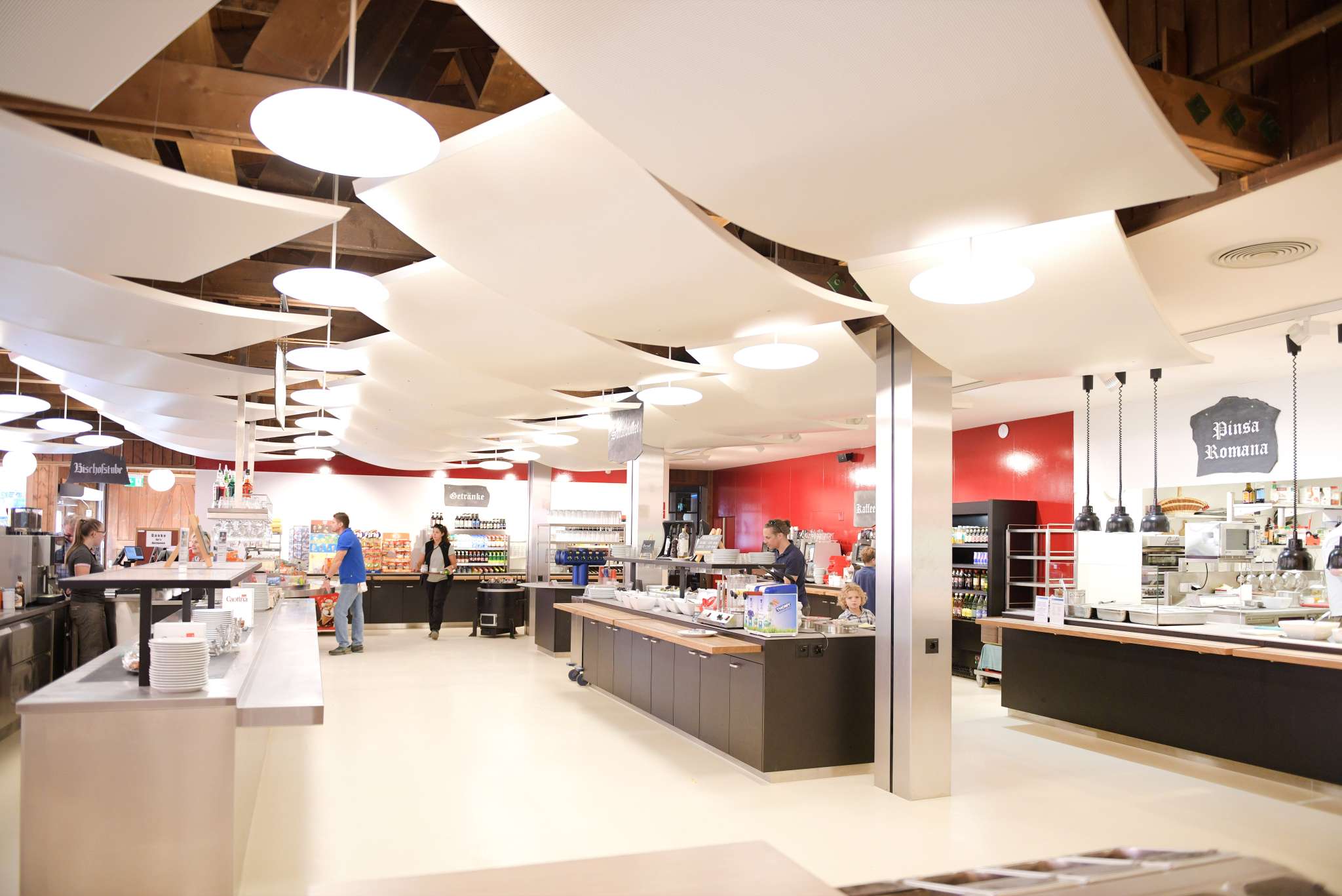 Das moderne Selbstbedienungsrestaurant Ämpächli mit Kaffeebar und grosser Sonnenterrasse ist der zentrale Treffpunkt für Gross und Klein.