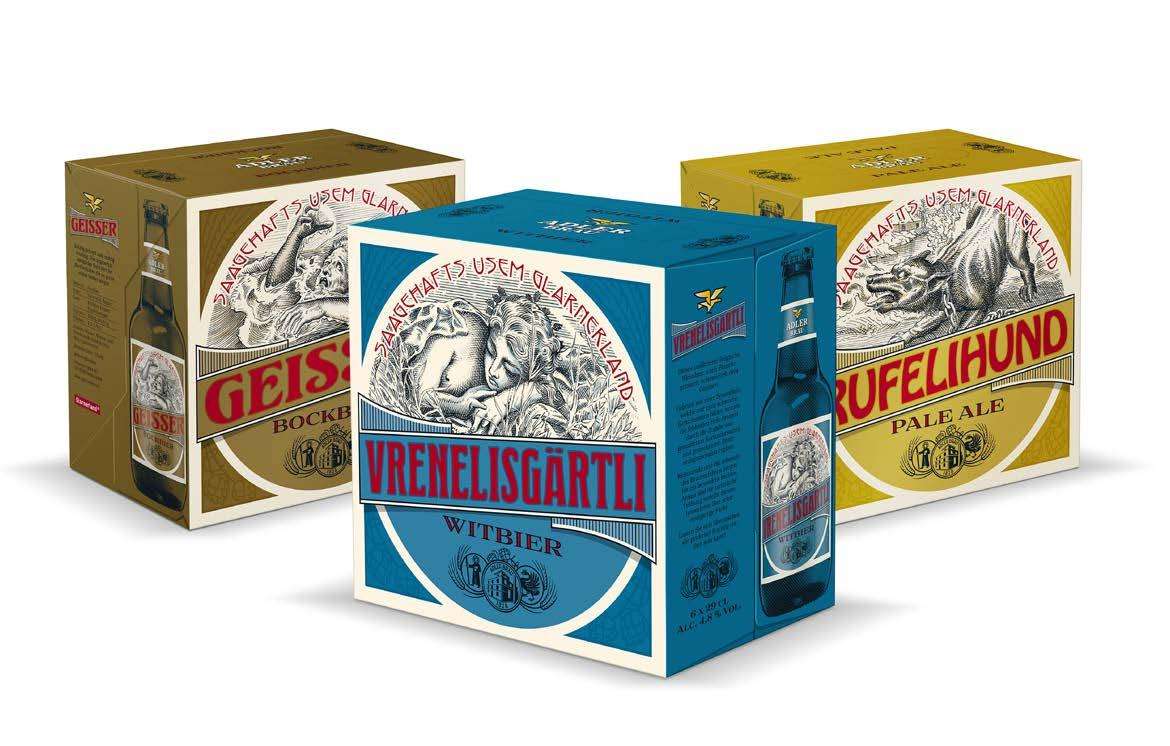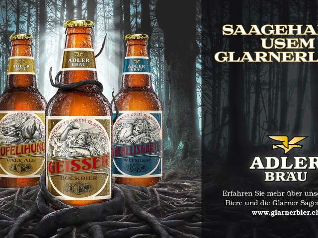 Unter dem Label «Saagehafts usem Glarnerland» hat Adler Bräu eine neue Produktelinie erschaffen. Als Namensgeber für die kultigen 29-cl-Flaschen dienen Glarner Sagen, die genau wie Adler Bräu seit jeher fest im Kanton Glarus verwurzelt sind. Dabei entstehen aussergewöhnliche Perlen der Braukunst, die das Sortiment der Brauerei Adler raffiniert ergänzen.