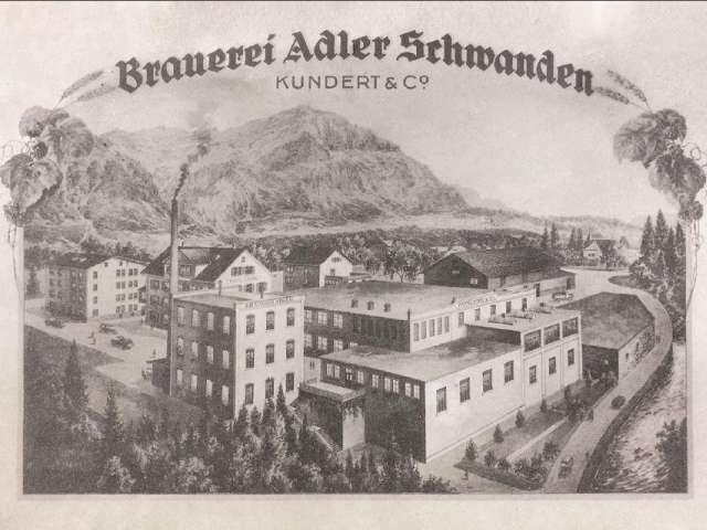 Erbaut und gegründet wurde die Brauerei Adler in Schwanden 1828 vom sogenannten Major, Ratsherrn, Gesandten und Adler-Wirt Fridolin Tschudi. Im Jahr 1885 übernahm Gustav Kauth aus Luzern den Betrieb und im selben Jahr trat auch Paulus Kundert als Teilhaber in die Firma ein. Bereits vor über 100 Jahren schrieb also das erste Mitglied der Familie Kundert in der Brauerei Adler Familiengeschichte.