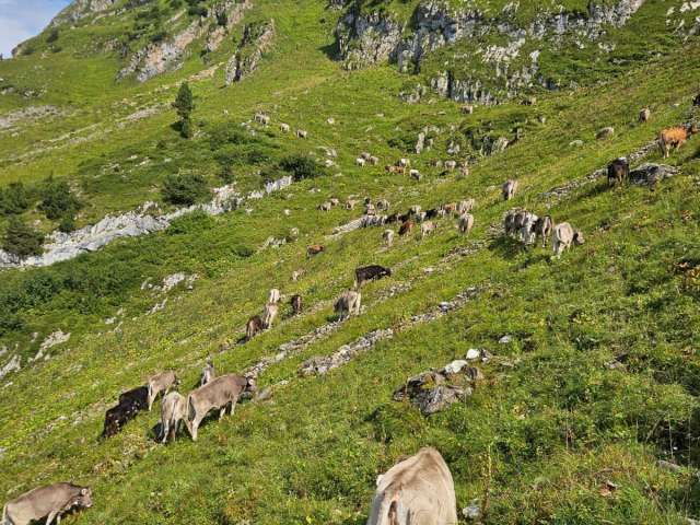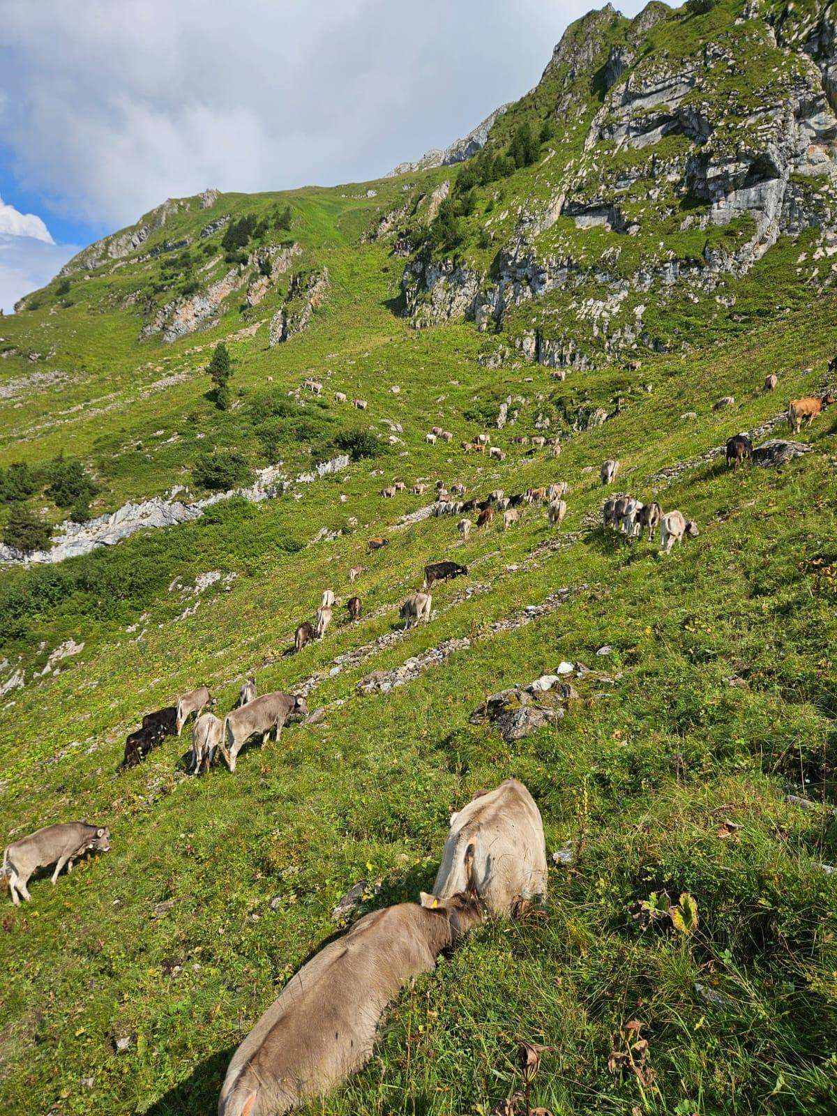 Im ersten Sommer, in dem wir selber für das Alppersonal zuständig waren, durften wir unter anderen Simon in unser Team nehmen. Ein junger, engagierter Toggenburger, der mit seiner Art und seinem Wesen wie ein Familienmitglied für uns war. Ein Jahr später, also 2021 kam dann die Aargauerin Christine als Zusennin ins Team und auch sie gehörte fast schon ein bisschen zur Familie. Die beiden haben sich bei uns kennen und lieben gelernt und blieben uns drei und vier Sommer treu. Zum treuen Alppersonal gehört auch weiterhin Vater Fritz (Senn) und auch Mutter Anna übernimmt eine grosse Verantwortung mit der Pflege vom Käse. Wir hatten immer wieder tolle Leute bei uns, die das Team vervollständigt haben. Jeden Sommer frische Angestellte zu suchen und zu finden ist jedoch nicht immer leicht; manchmal merkt man erst mit der Zusammenarbeit, ob es passt oder nicht und einige unterschätzen auch, was «z’Alp sii» bedeutet. Ein Alpsommer ist streng und von Schlafmangel begleitet. Das kann zu zusätzlichen Reibereien führen und es kommt leider auch hin und wieder vor, dass jemand das Team frühzeitig verlässt. Umso schöner, wenn sich das Team versteht und gut zusammen funktioniert und noch viel schöner, wenn zwischendurch einander «zue g’juchzet» wird oder ein schöner Jodel oder ein Örgelistück ertönt. Das sind die unvergesslichen Momente, die mir persönlich Mitten ins Herz gehen.