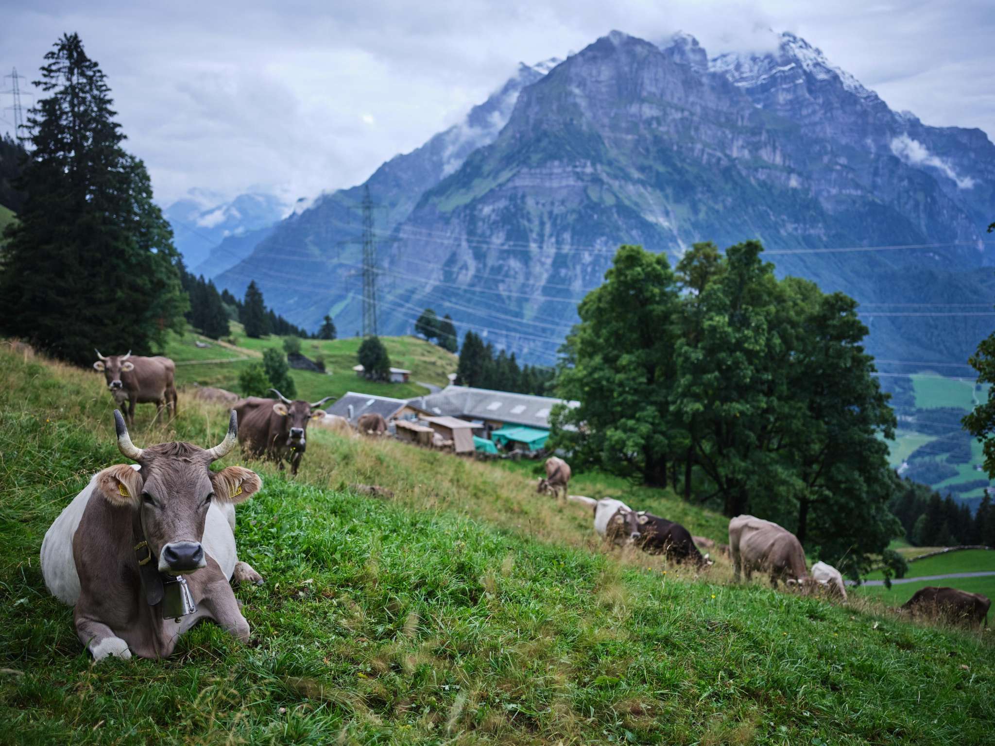 Unsere Alp ist perfekt gelegen. Ein paar Schritte aus dem Haus und schon stehen wir auf der Alpwiese. Unser Zuhause im Stoffel, hoch über Ennenda, liegt auf knapp 1338 m ü. M. Schon unser Zuhause fühlt sich etwas nach Alp an. Es ist ruhig, fernab von der ganzen Hektik und mitten in der Natur. Paradiesisch und ein riesiges Geschenk, an diesem schönen Fleckchen Erde fünf Kinder gross zu ziehen. Im Frühling, bei ansteigenden Temperaturen, steigt auch das Alpgefühl. Dann zieht es uns wieder auf die Weiden wo wir mit Klein und Gross mit Zäunen beginnen. Die Alp liegt zwischen Äugsten und dem Fronalpstock und erstreckt sich zwischen 1200 und 2000 m ü. M. über drei Stafel. Wenn dann wieder die Kuhglocken ertönen, beginnt die abwechslungsreichste Zeit im Jahr. Bei uns sömmern jährlich ca. 65 Milchkühe, 75 Rinder und 1 Stier von insgesamt 11 verschiedenen Bauern. Die Milch verarbeiten wir zu zirka 10 Tonnen Glarner Alpkäse AOP, wovon wir ungefähr einen Drittel selbst vermarkten. Auch die 25 Schweine, welche jedes Jahr bei uns das Alpleben geniessen dürfen, vermarkten wir selber.