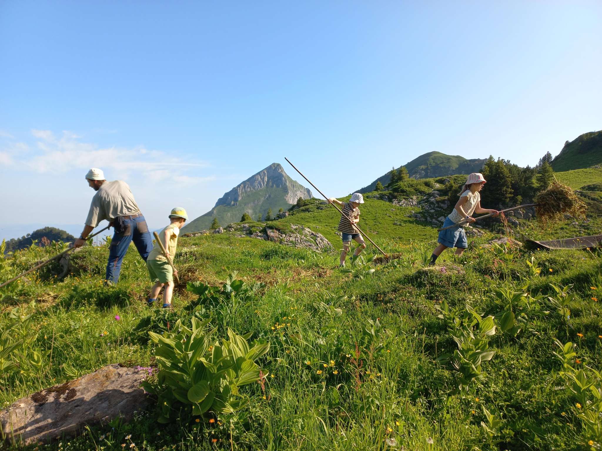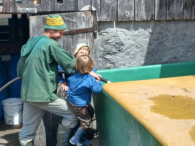 Jetzt, wo der Neubau im Oberstafel dem Ende zugeht, möchten wir uns auch wieder etwas mehr der Alp widmen. Peter möchte nach zwei Sommern als Bauherr wieder «richtig» z’Alp und wenn möglich in Vater Fritz’ Fussstapfen treten. Sein Traum ist es, das Sennen zu übernehmen und Fritz durch etwas weniger Verantwortung zu entlasten. Auch ich möchte nach diesen zwei sehr organisationsreichen Jahren die Prioritäten etwas anderst setzen. Schritt für Schritt möchte ich die Käsepflege übernehmen und so Anna’s arbeitsintensive Verantwortung übernehmen. Über die Sommerferien und Oberstafelzeit möchten wir weiterhin möglichst viel Zeit, oder besser gesagt noch mehr als bis anhin als Familie zusammen sein und unseren Kindern die Freude am Alpleben weitergeben. Mit dem Neubau im Oberen haben wir uns eine richtig wohnliche Atmosphäre geschaffen und es ist ein bisschen ein zweiter Wohnort geschaffen worden. Denn während der Schulzeit wohnen ich und unsere fünf Kinder im Stoffel und pendeln von dort aus zur Schule und auf die Alp. Umso mehr freuen sich immer alle, wenn die Sommerferien beginnen und wir zusammen sein können.