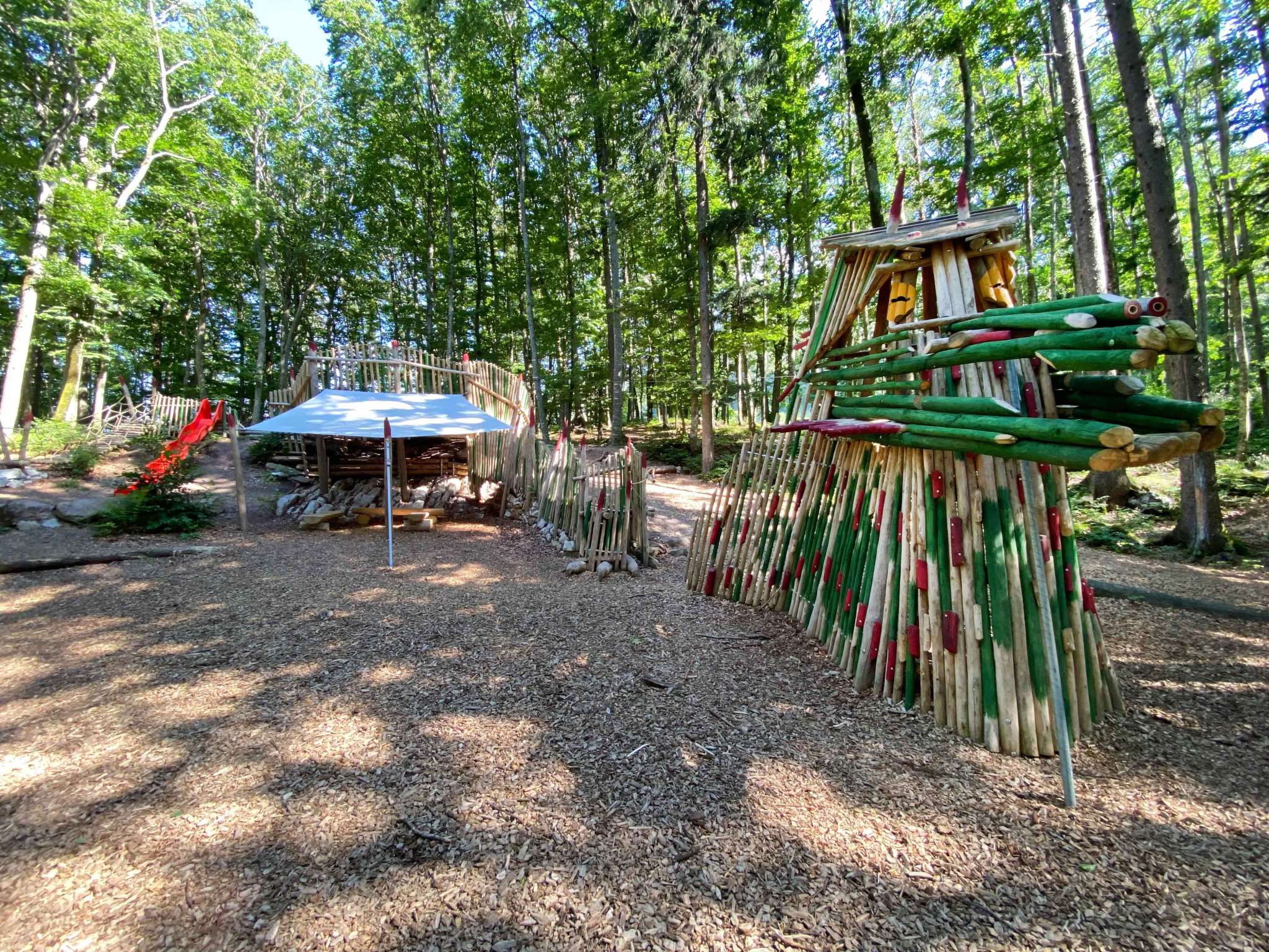 Im Reuteggwald wartet der Drache vom Mürtschenloch auf viele Kinder, die mit ihm spielen wollen. Für die Grossen gibt es verschiedene Sitzgelegenheiten.