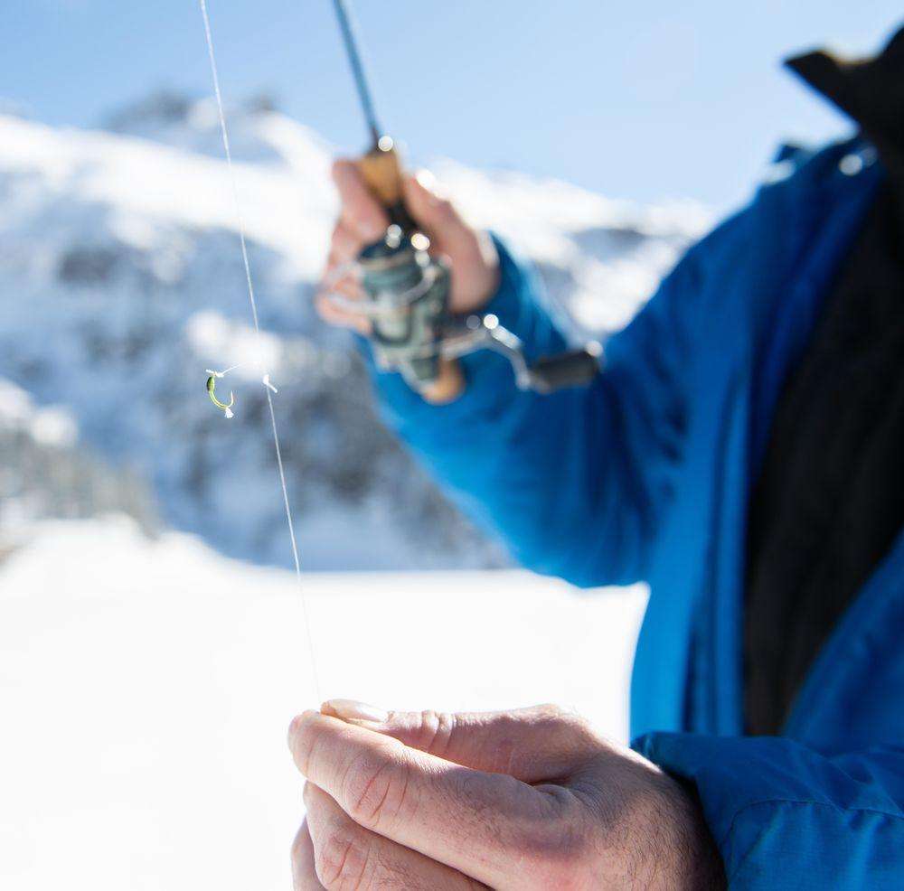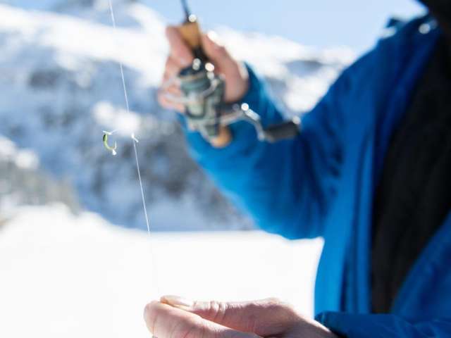 Beim Eisfischen werden in der Regel Ruten mit Längen von 60 bis 90 cm verwendet. Damit kann man näher am Eisloch stehen und den Fisch besser kontrollieren. Nebst Geduld braucht es zum Eisfischen warme Kleider und wasserdichte Schuhe.