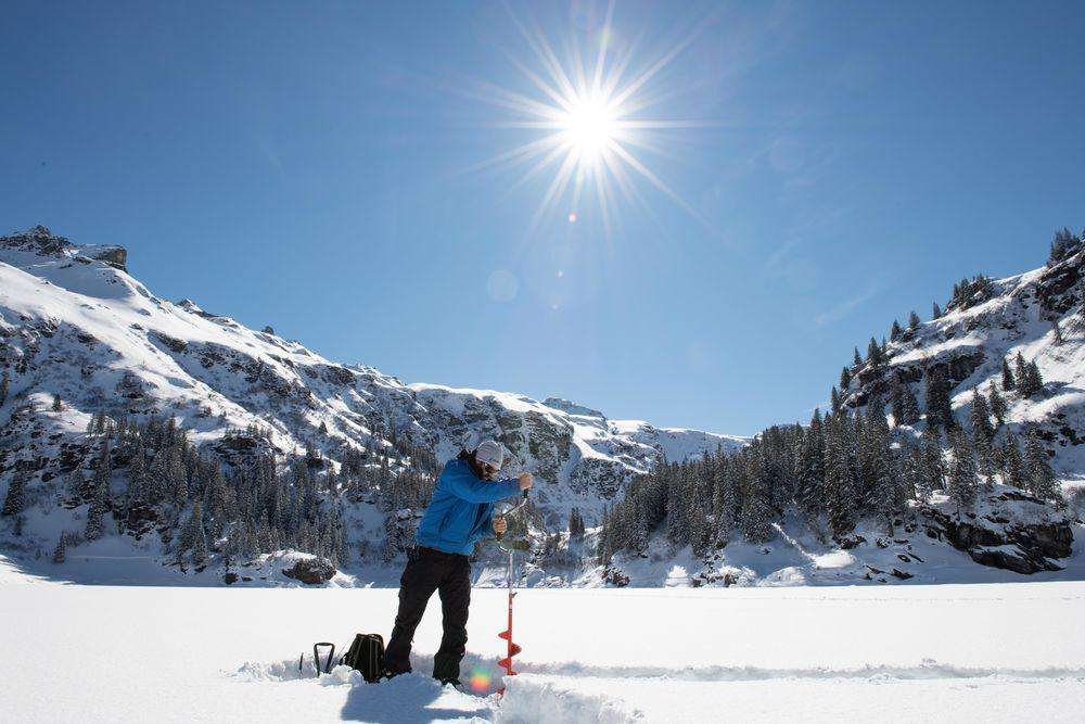 Das Eisfischen auf dem Mettmensee ist ein ganz besonderes Wintererlebnis für Jung und Alt, für Könner und solche, die noch nie gefischt haben.