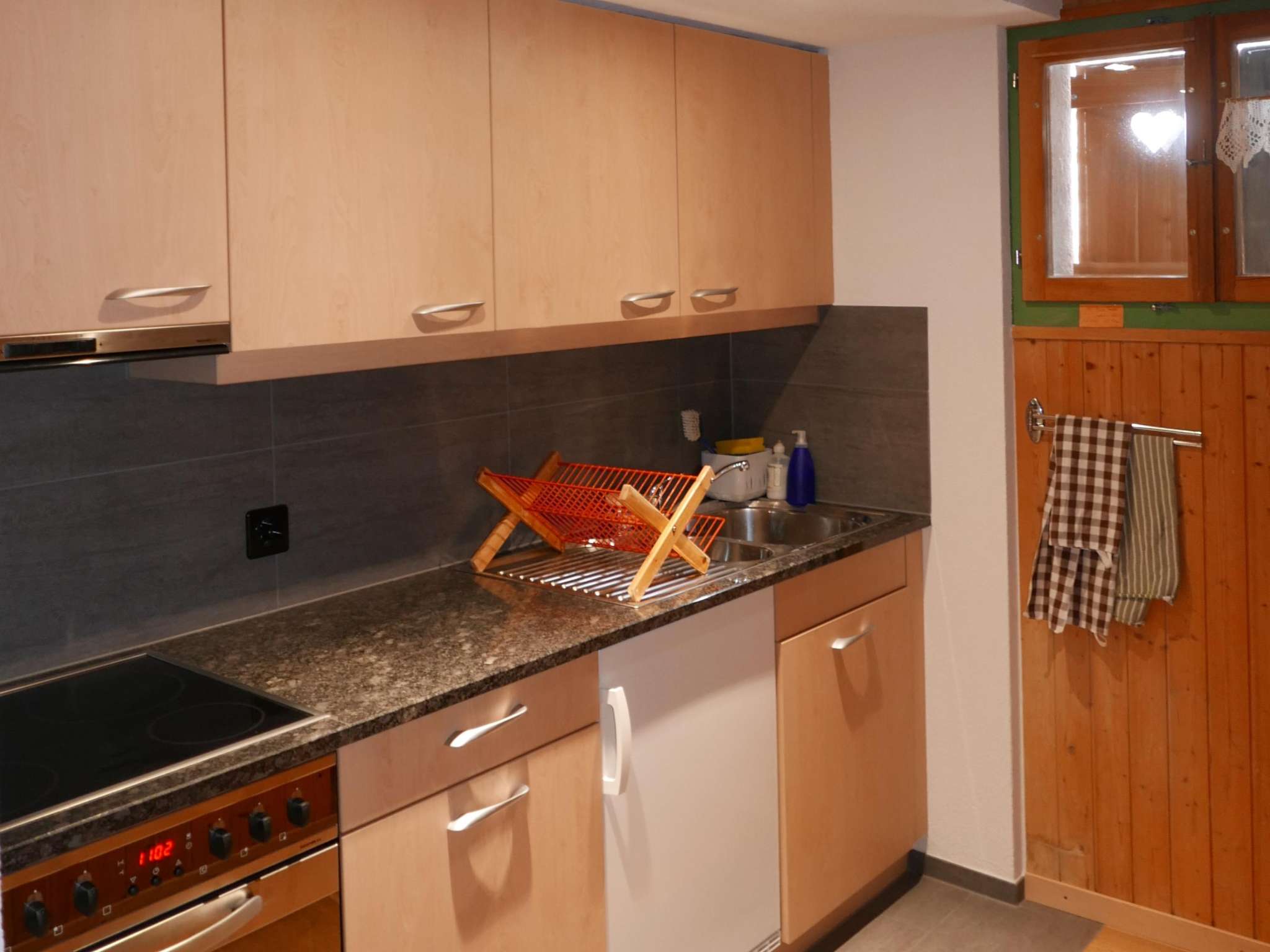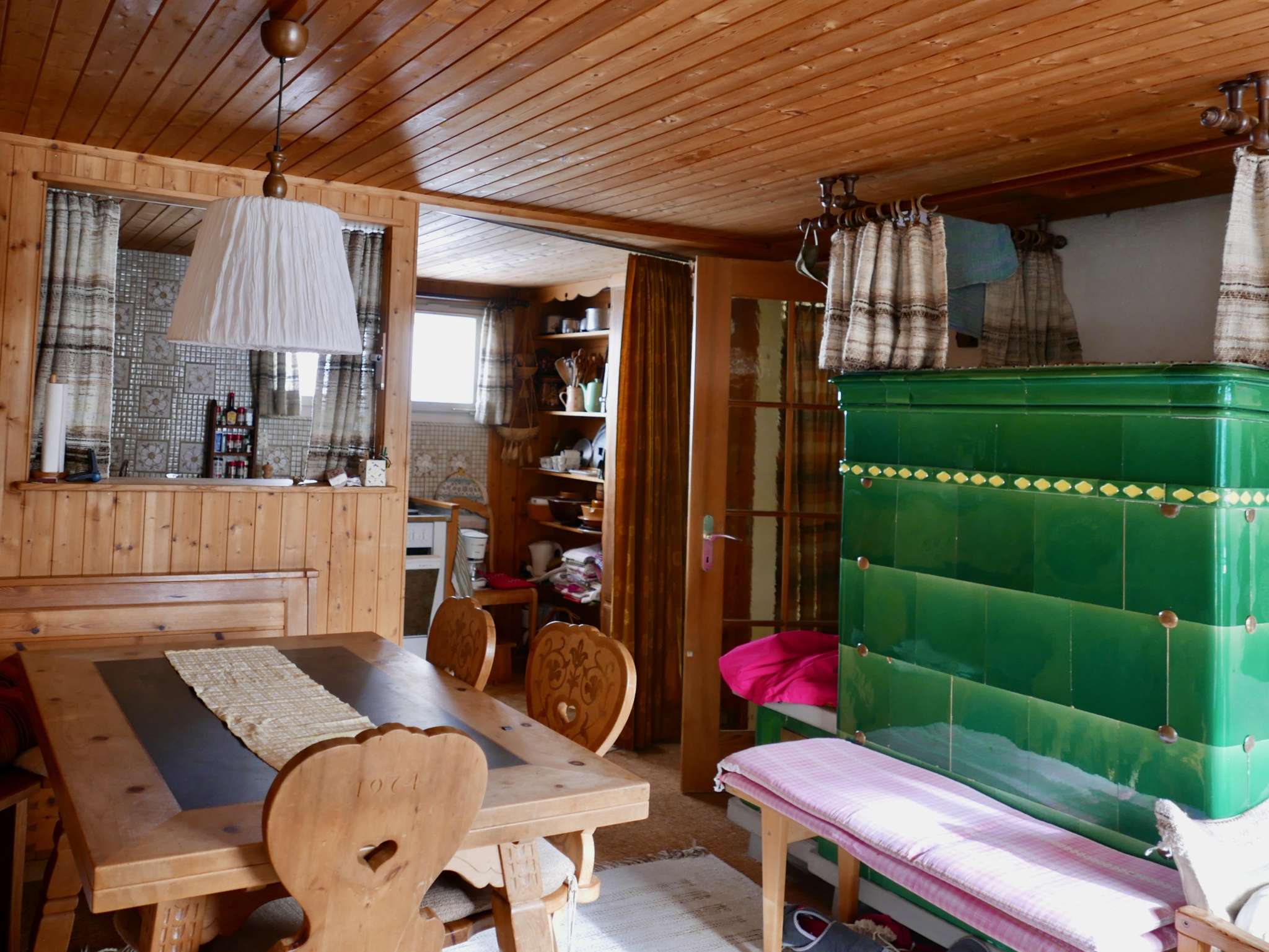 Wohnzimmer mit Kachelofen, Küche, Grillmöglichkeiten, 2 Duschen, Terrasse und Balkon, Parkplatz, Skikeller, Waschmaschine und Trockner.
