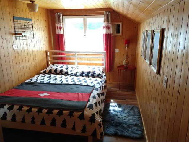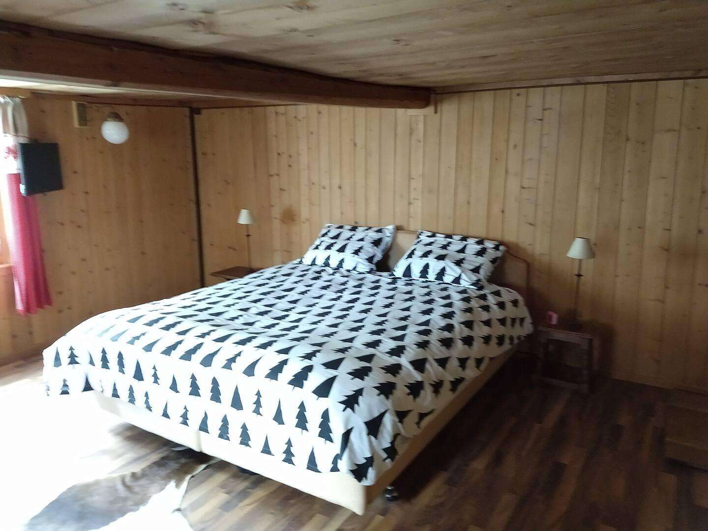 - Schlafzimmer zwischen Treppenabsatz und Badezimmer mit Doppelschlafcouch.