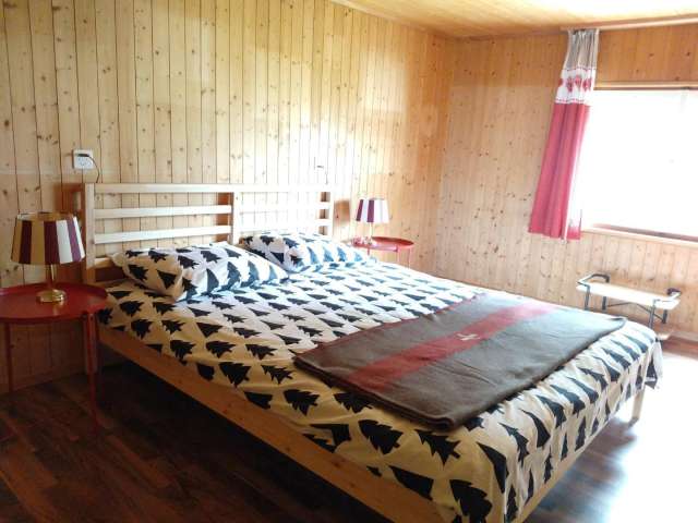 - Schlafzimmer mit Doppelbett und Kleiderschrank,