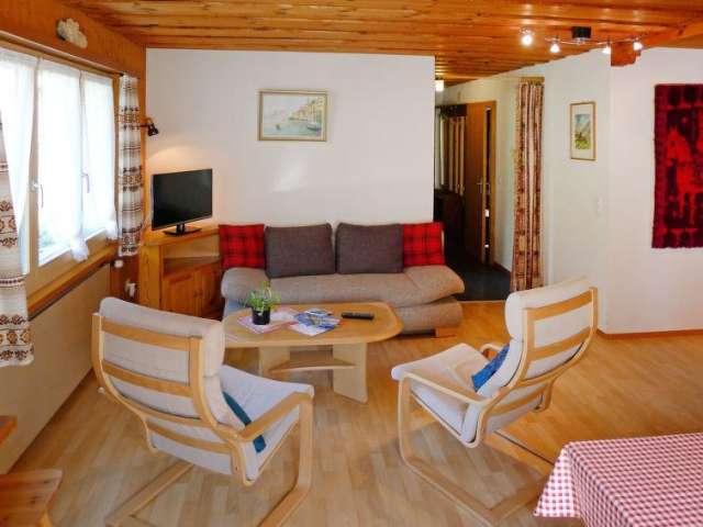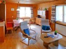 4-Zimmer-Wohnung 90 m2, im Erdgeschoss. Geschmackvoll und gemütlich eingerichtet: Wohn-/Esszimmer mit Esstisch und Sat-TV (Flachbildschirm), Radio und CD. 1 Zimmer 12 m2 mit 1 Bett und 1 x 2 Etagenbetten. 2 Zimmer, jedes Zimmer mit 2 Betten. Offene Küche (3 Kochplatten, Backofen). Dusche/WC. Schöne Sicht auf die Berge und die Landschaft. Zur Verfügung: Internet (Wireless LAN, gratis). Parkplatz. Bitte beachten: Nichtraucher-Unterkunft.