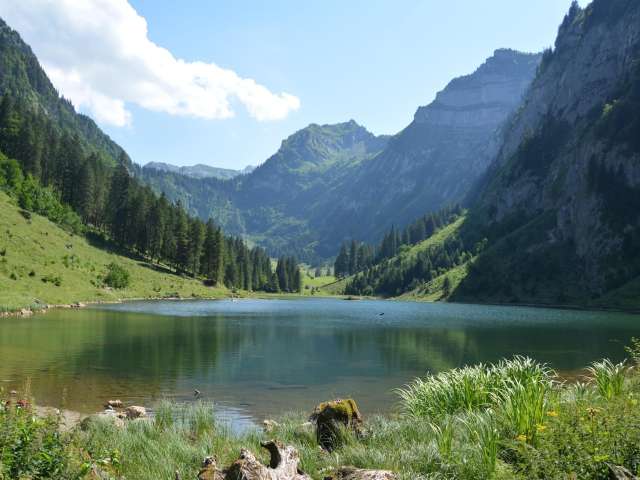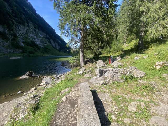 Eine gemütliche Seeumrundung ist jedesmal etwas Besonderes. Familien machen dabei vielleicht den Abstecher zu den "Drachenhöhlen". Während der Sommersaison kann man im urigen Bergrestaurant Talalp bei Ursi Kamm einkehren.