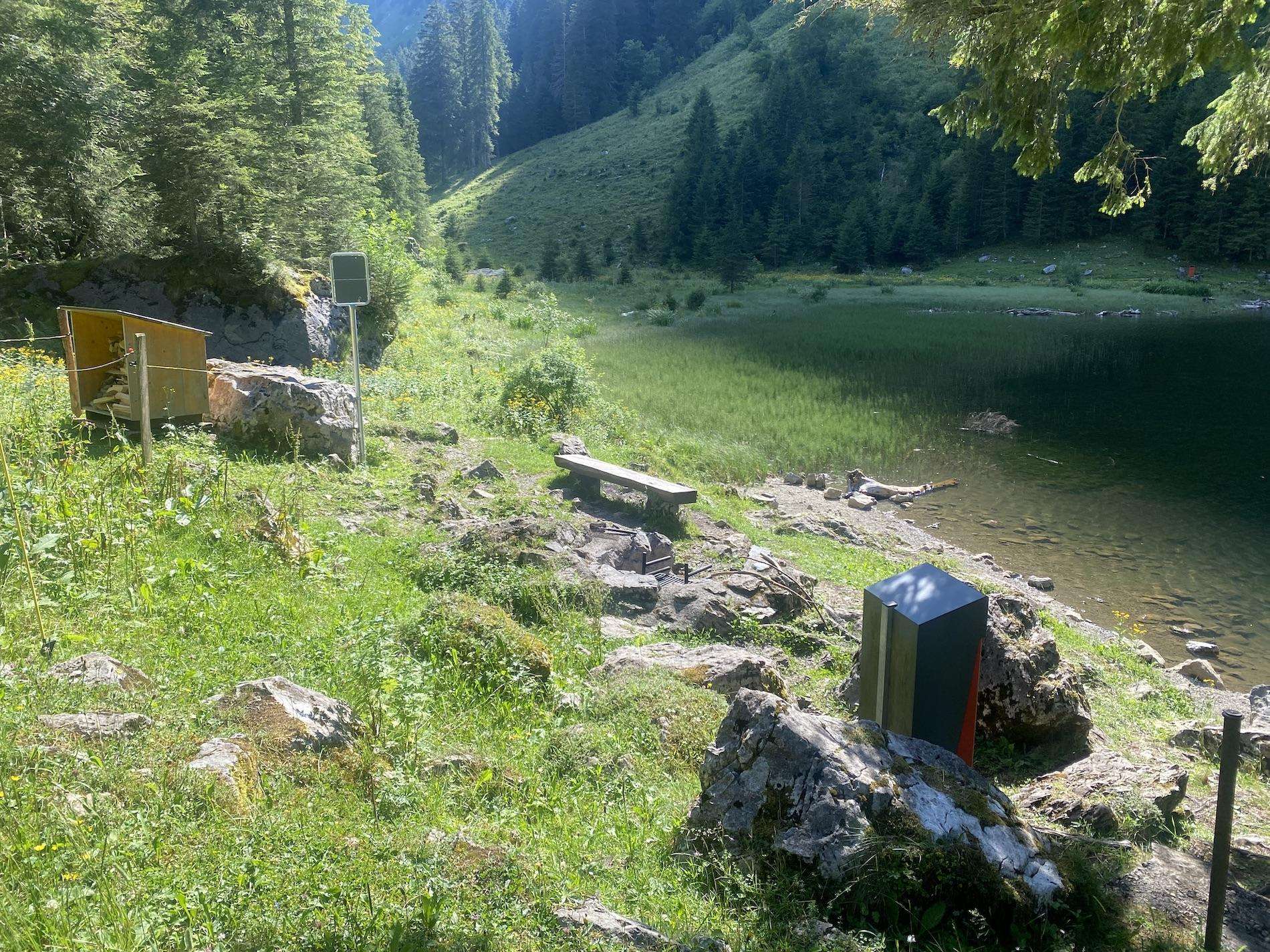 Am wunderschönen Talalpsee gibt es gleich zwei Schweizer-Familienfeuerstellen.