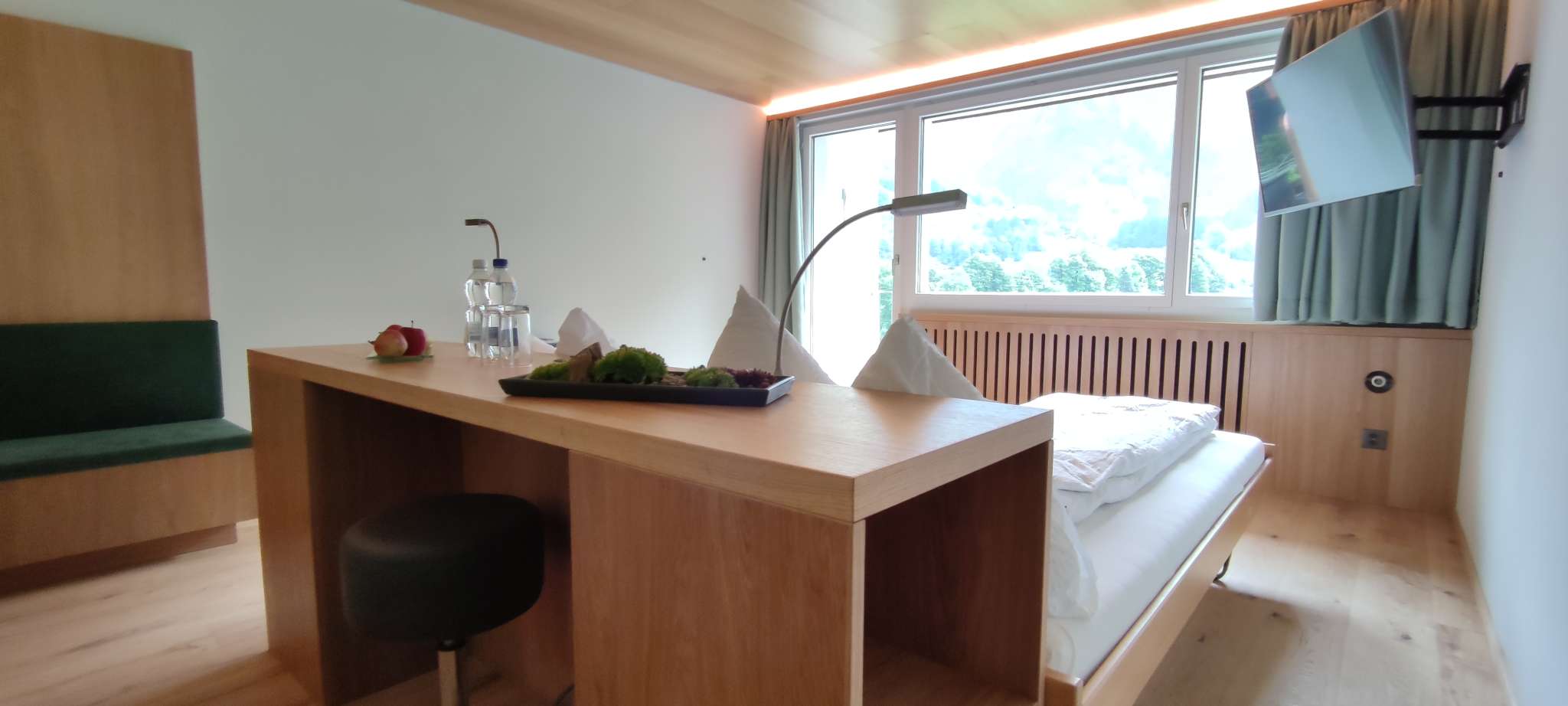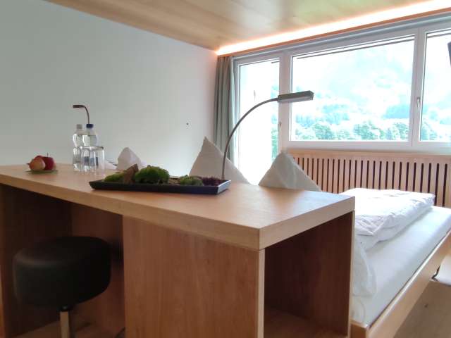 Reservationen werden unter 055 642 12 20 oder info@hotel-elmer.ch angenommen. Das Hotel verfügt über einen kleinen Wellnessbereich mit direkter Aussicht auf das UNESCO-Weltnaturerbe und das Martinsloch.