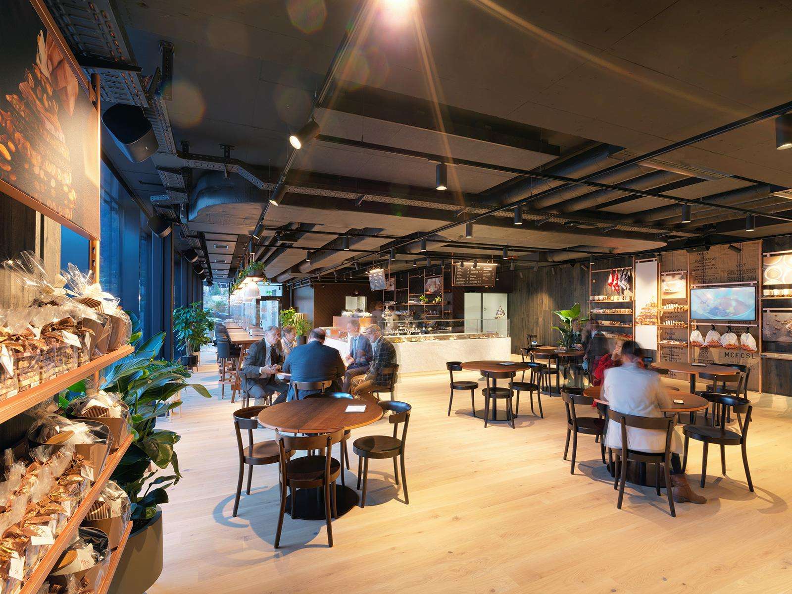 Das Konzept des House of Läderach wird durch ein stilvolles Café abgerundet. Das Café lädt zum Verweilen ein und wartet mit hauseigenen Pâtisserie-Kreationen, einem aussergewöhnlichen Kakao-Getränk in typischer Läderach Manier und vielen anderen Köstlichkeiten auf. Der ideale Ort, um eine kleine Pause mit schmackhaften Gaumenfreunden zu geniessen oder den Tag genauso genussvoll, wie er bereits begonnen hat, enden zu lassen.