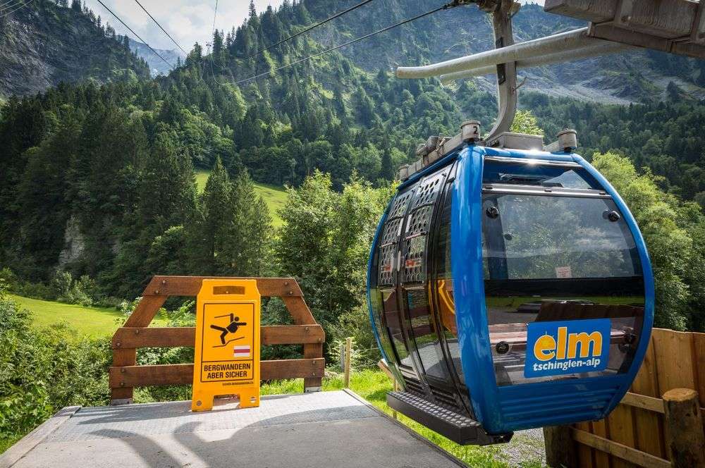 Die 4-Personen-Kabine mit der atemberaubenden Aussicht in die Tschinglenschlucht bringt Sie in 8 Minuten mitten ins UNESCO-Welterbe Tektonikarena Sardona
