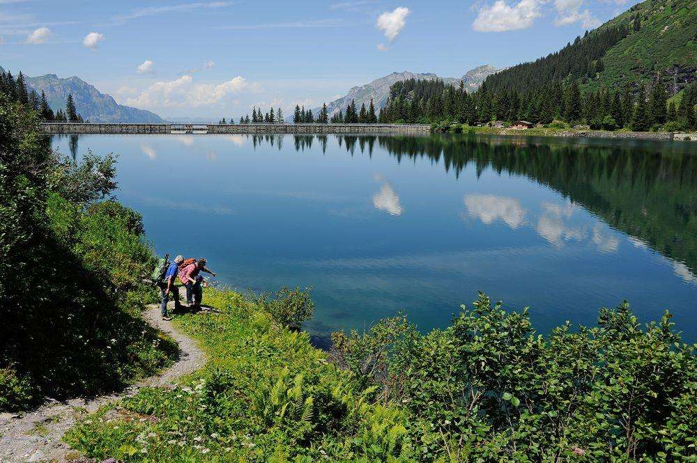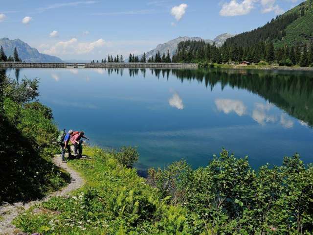 Der idyllische Stausee Garichti - von den Glarnern auch Mettmensee genannt - liegt wunderschön eingebettet im Freiberg Kärpf auf 1622 Metern über Meer
