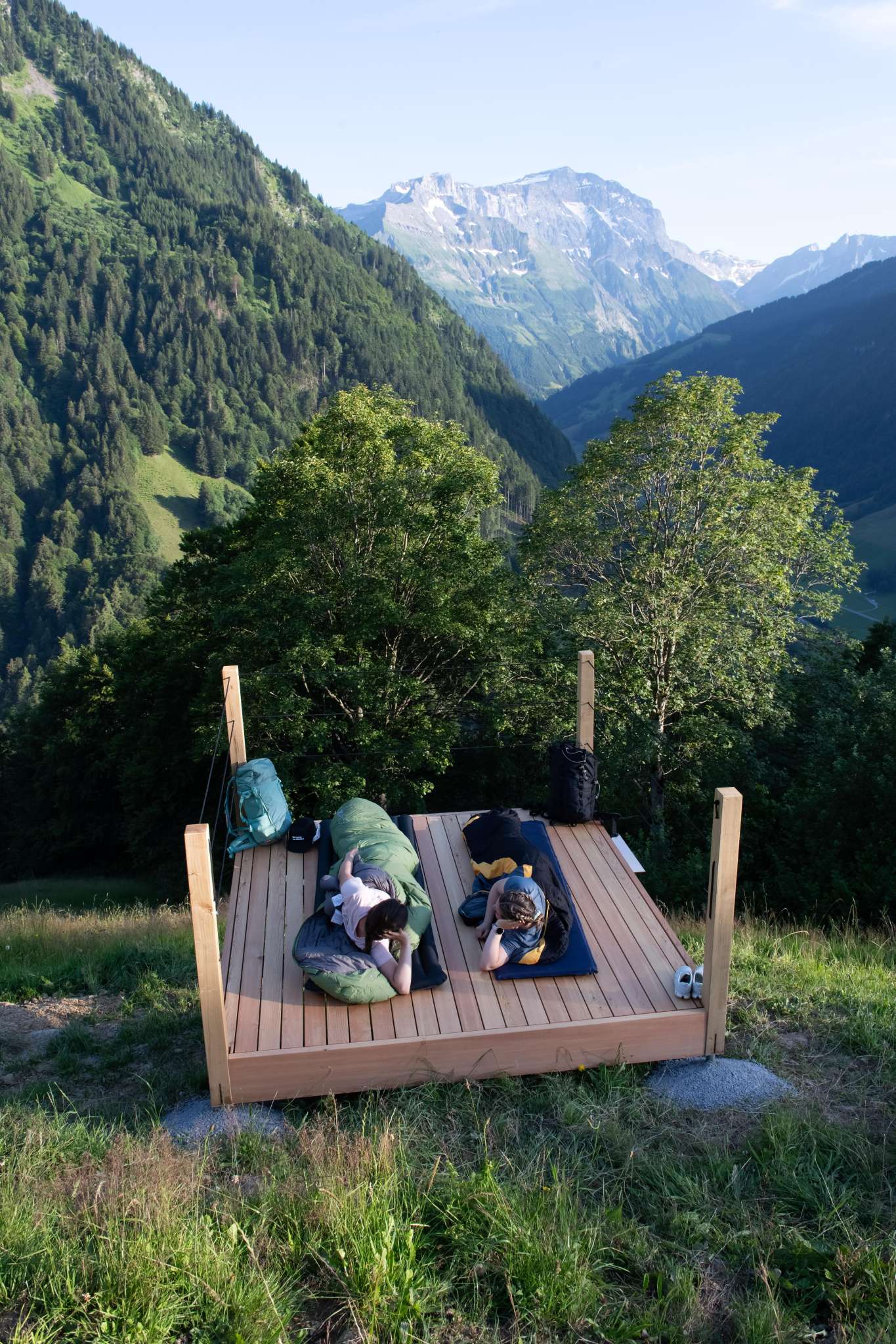 - Übernachtung auf einer vorhandenen Holzplattform aus Lärchenholz