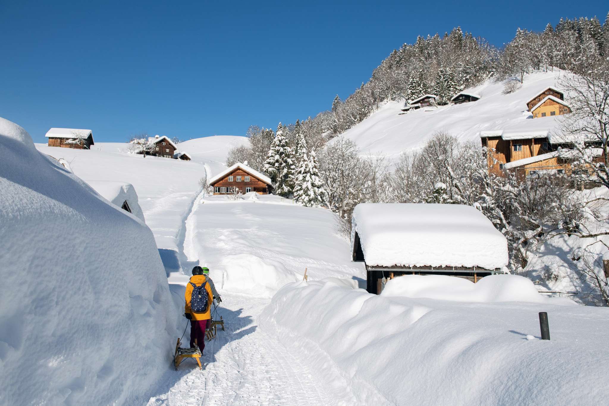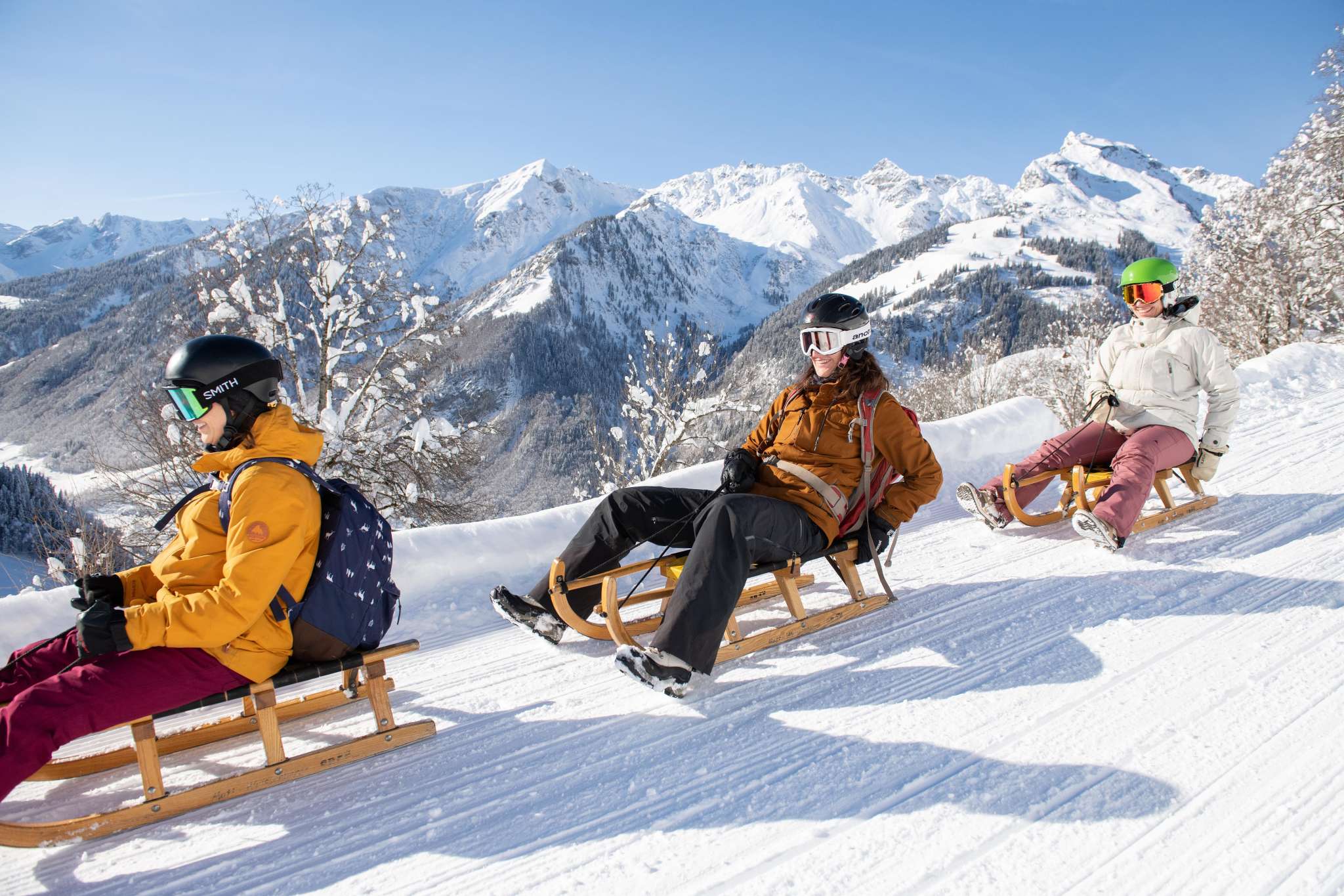 Für 18.- pro Tag (Fr. 12.- halber Tag ab 12:00 Uhr) können Sie bei der Talstation unsere beliebten 'Family Flizzer' mieten. Mit der Tuch- Sitzbespannung sind sie bequem und durch die Beweglichkeit sehr gut lenkbar. Es sind viele Schlitten verfügbar, Gruppen sollten aber unbedingt rechtzeitig reservieren.