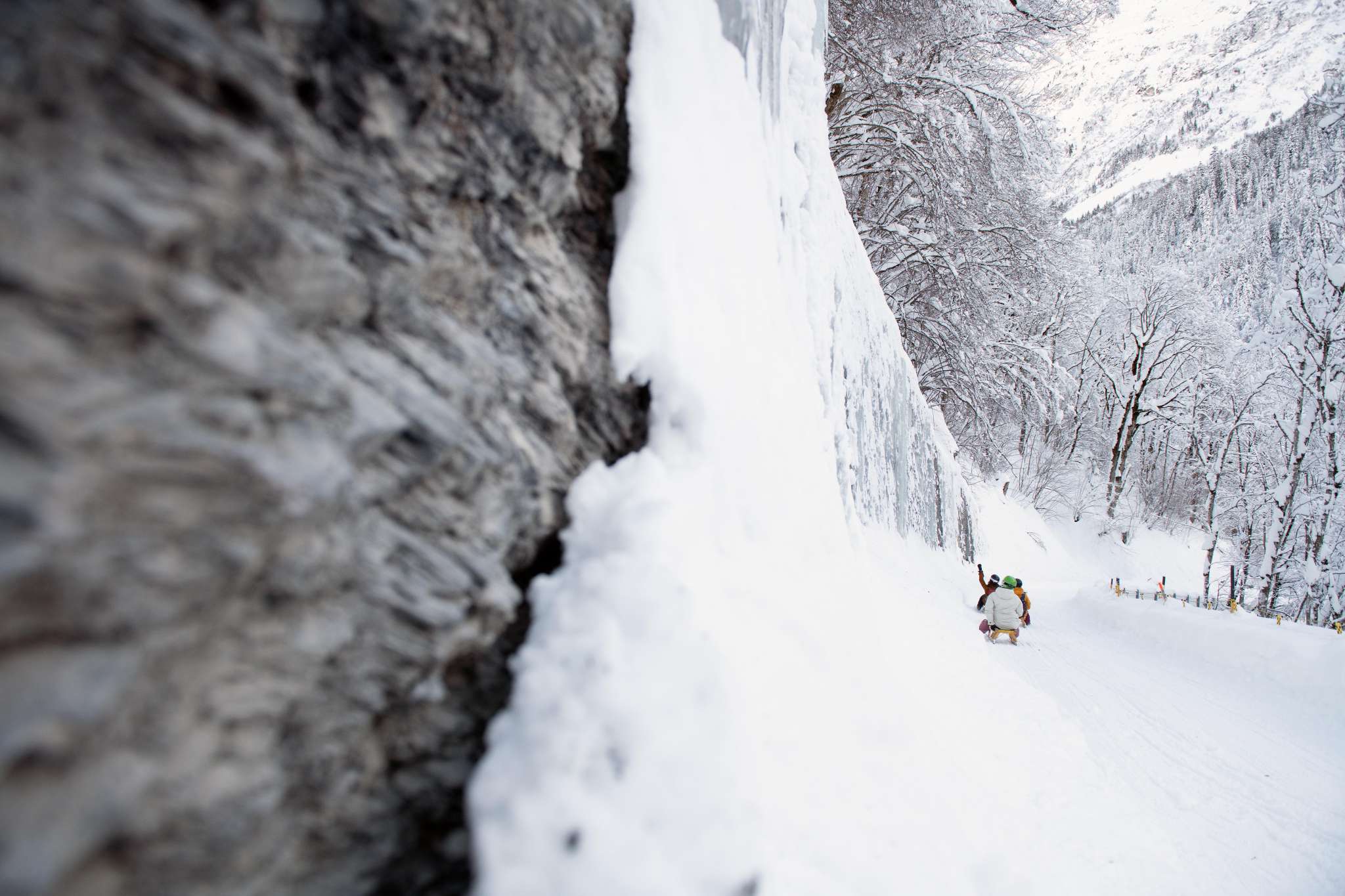 Die präparierte Schlittelbahn führt entlang der faszinierenden und wildromantischen Chrauchtalschlucht.