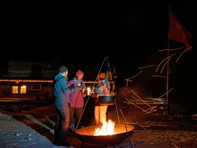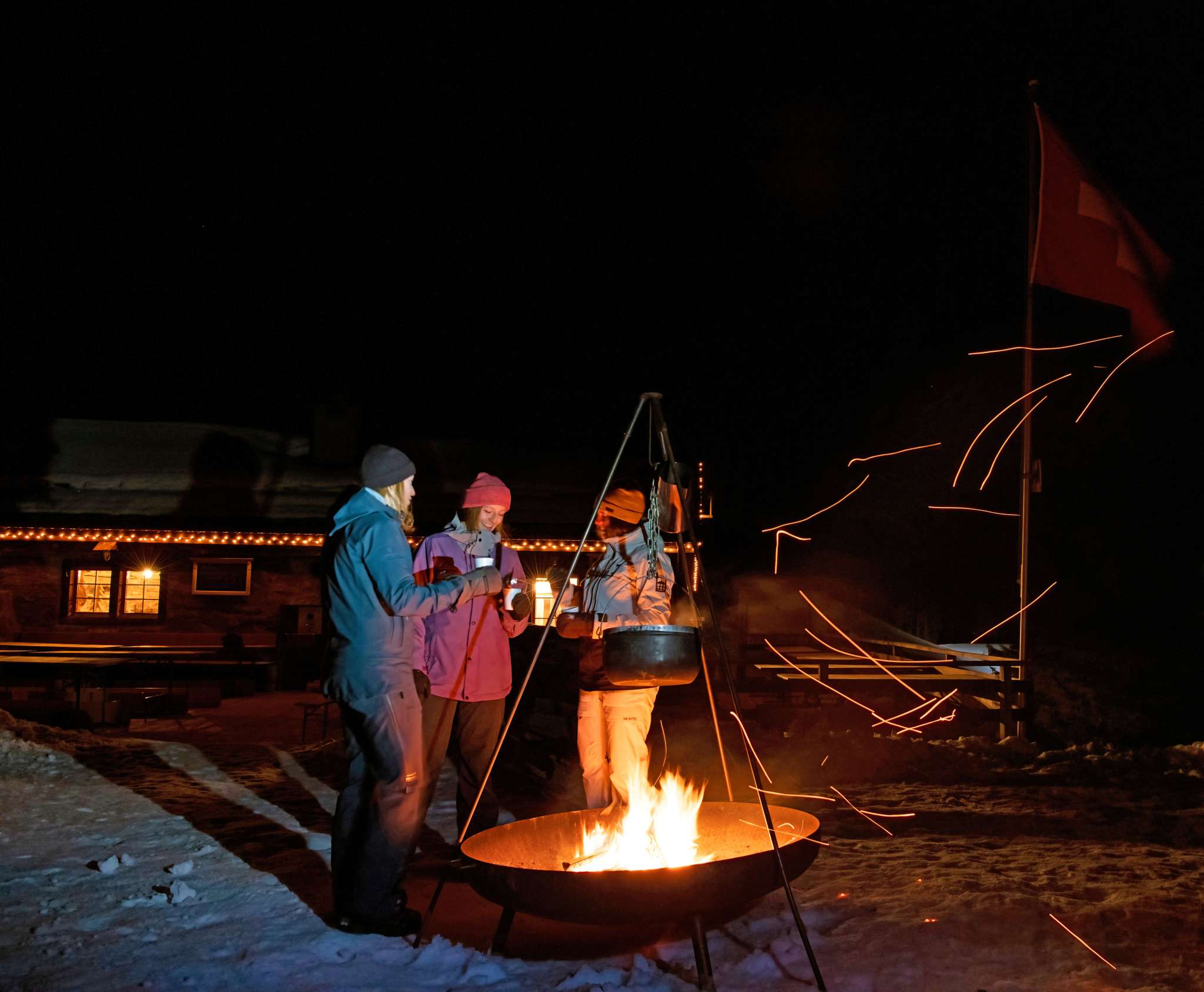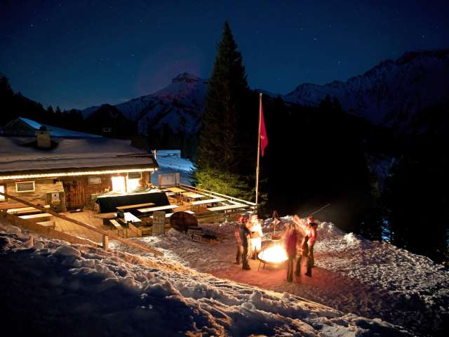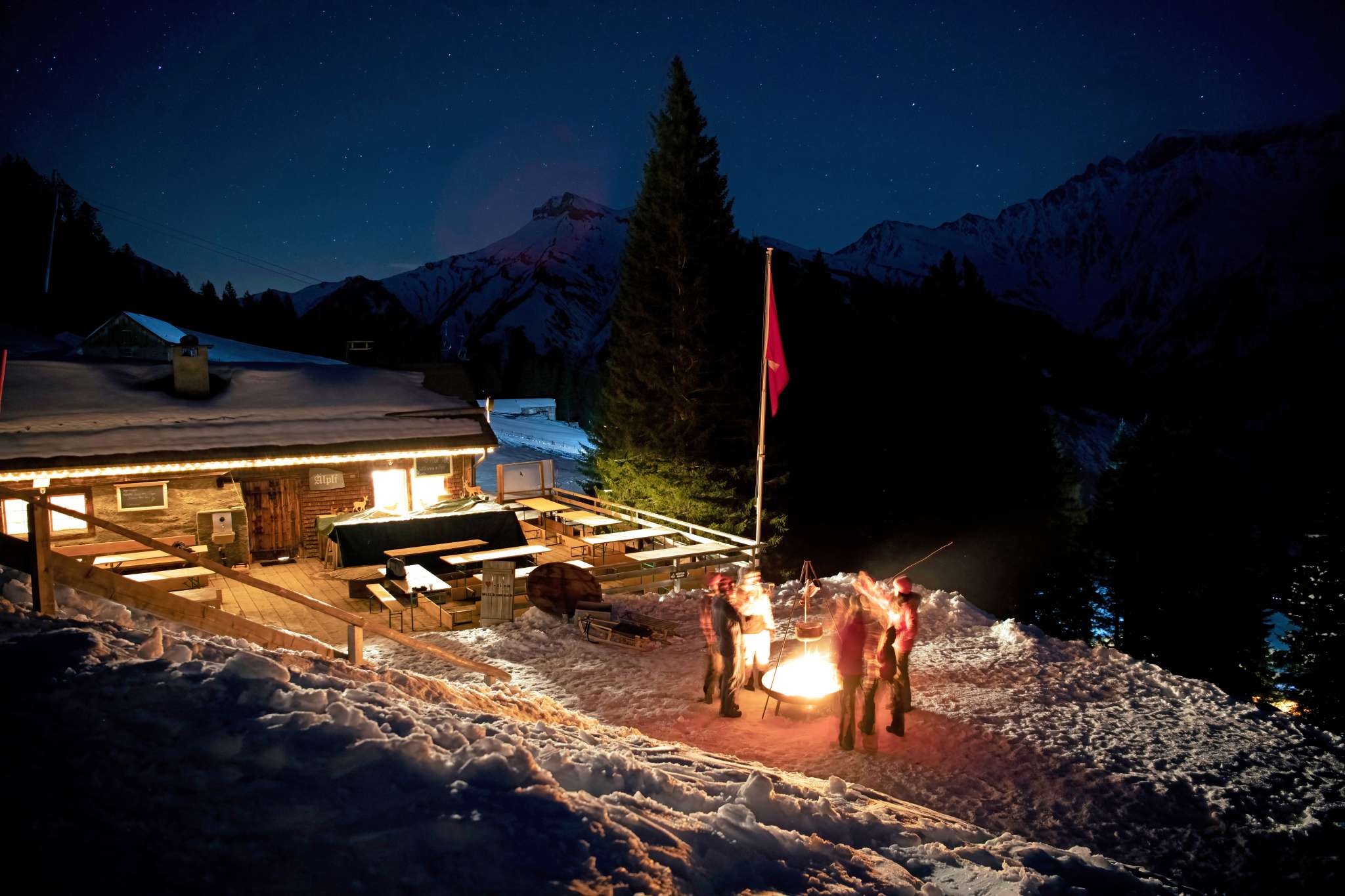 Der Alphüttencharme und die Candle-Light-Stimmung versprechen ein ganz besonderes Ambiente. Zum Älpli gelangen Sie zu Fuss in 15 Minuten über einen romantisch mit Laternen beleuchteten Winterwanderweg.