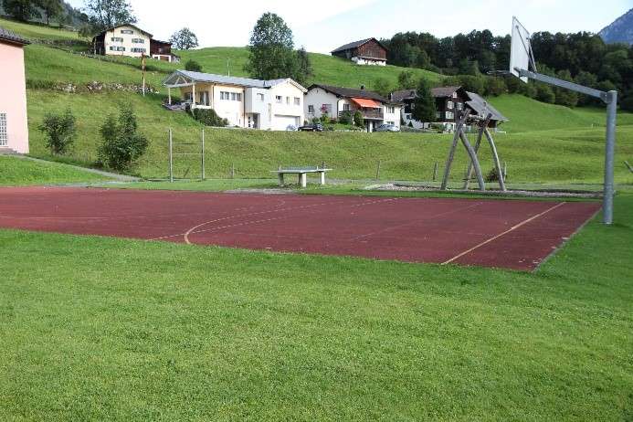 Nebst der Seilbahn können die Kinder auf Schaukeln und im Vogelnest durch die Luft schwingen. Auf dem roten Platz kann man Basketball spielen und am PingPong-Tisch einen Wettkampf veranstalten. Die Wiese bietet sich für allerlei Gemeinschaftspiele an und unter den Bäumen findet man Schatten. Eine Kletter- und Rutschkombination sowie ein Federspielgerät und eine Weitsprunganlage befindet sich ebenfalls auf dem schönen Spielplatz.