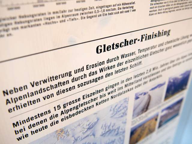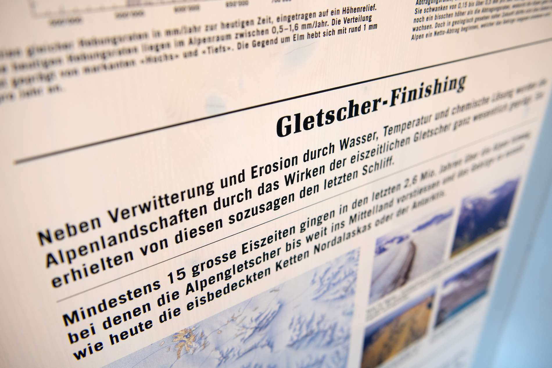 Die UNESCO Welterbe-Ausstellung Kerenzerberg im Seminarhotel Lihn bietet interessante Einsichten zum Welterbe Sardona und einen Überblick zur Entstehung der Alpen. Beim spannenden Rundgang erfährt man Vieles zur geologischen Forschung in den Glarner Alpen und zur Glarner Hauptüberschiebung. Videos und Touch-Screen geben weitere Auskunft und mithilfe eines Mikroskops können lokale Steine erforscht werden. Die Ausstellung zeigt: ▸ Fünf Infowände über die Entstehung der Erde, der alpinen Gebirge und zur Forschungsgeschichte im Welterbe Sardona ▸ Zwei Video- und eine Touchscreen-Stationen ▸ Mikroskop mit vielfältigen Gesteinsexponaten ▸ 3D-Relief der Glarner Alpen ▸ Informationen und Bücher zum UNESCO-Welterbe Tektonikarena Sardona Die Welterbe-Ausstellung Kerenzerberg ergänzt das Besucherzentrum Glarnerland mit den beiden Standorten in Glarus (im Naturzentrum/Bahnhofgebäude) und Elm (im alten Schulhaus). So wird der Kanton Glarus zur Informations-Drehscheibe für Themen wie Geologie, Ökologie und Geotourismus. Die drei Standorte sind Ausgangs- und Zielorte für Wanderungen und Ausflüge in der Welterberegion Sardona. Auf Wunsch können Führungen durch fachkundige und speziell ausgebildete GeoGuides Sardona gebucht werden. Eintritt kostenlos.