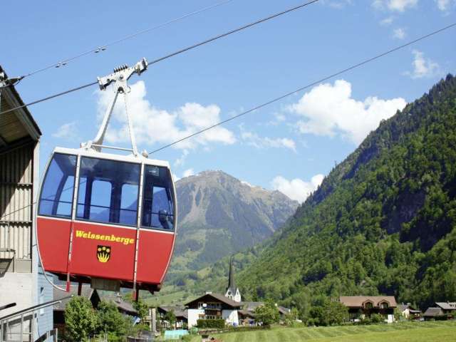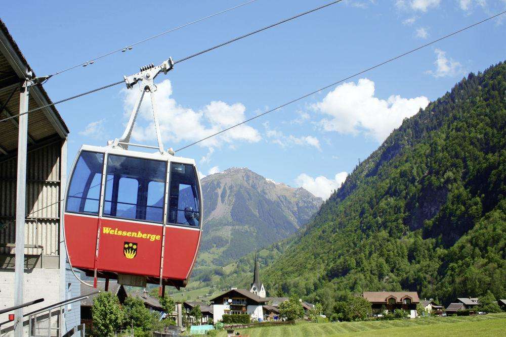 Die Gondel der Luftseilbahn Matt–Weissenberge fährt in wenigen Minuten auf die Sonnenterrasse Weissenberge auf 1266 m ü. M.