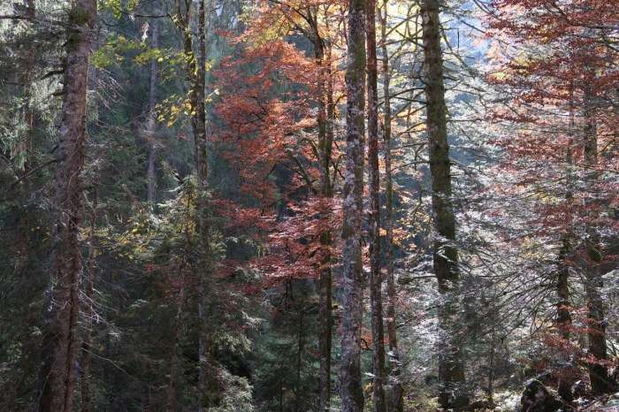 Umgeben von Flachmooren liegt der Flüewald zuhinterst im Niederurnertäli. Die mit einem Moosteppich und Zwergsträuchern bewachsenen Felsblöcke geben dem Wald eine märchenhafte Struktur. Fichten umschlingen mit ihren Wurzeln das Gestein. Unverkennbar ruft der Kuckuck im Sommer aus dem Wald, bevor er sich wieder auf den Weg nach Afrika macht. Waldreservat erleben Das Waldreservat lässt sich zu Fuss von der Bergstation der Luftseilbahn Niederurnen-Morgenholz aus in vier Stunden erkunden. Der Weg ist in der Regel zwischen Mai und Oktober begehbar. Weitere Informationen Die App 'Glarner Waldperlen' führt informativ und spielerisch durch das Waldreservat.