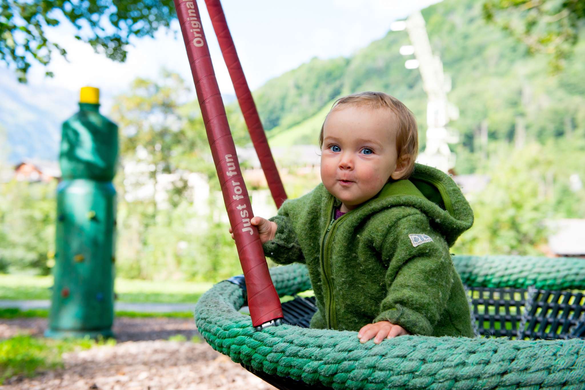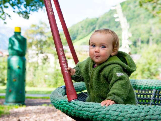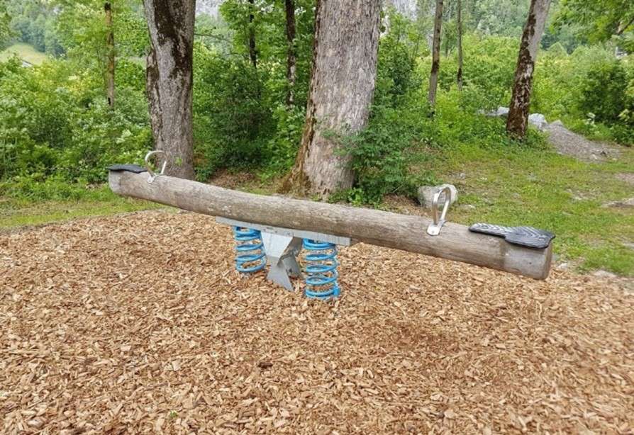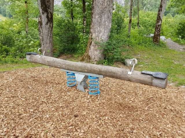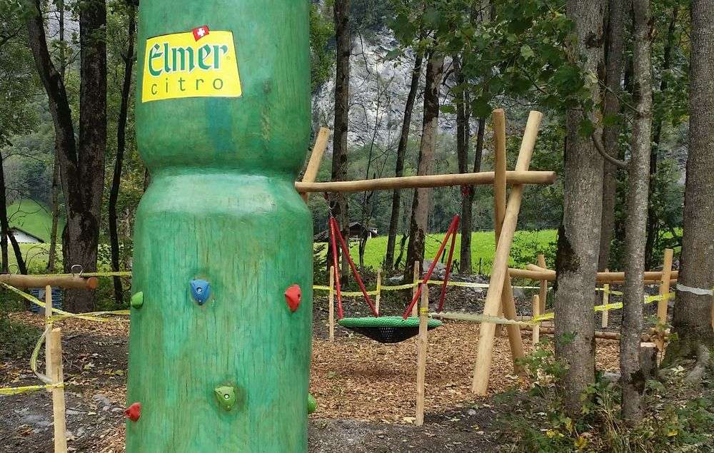 Der Waldspielplatz verfügt über eine Balken-Federwippe auf der die Kinder auf und ab Schaukeln können. Eine überdimensionale Elmer Citro Flasche steht zum klettern bereit und im Vogelnest kann man durch die Bäume schwingen. Früh übt sich im Gleichgewicht wer auf dem Balancier- und Kettensteg unterwegs ist. Über den Einstiegsturm kann man mit der Rutschbahn zurück auf den Waldboden.