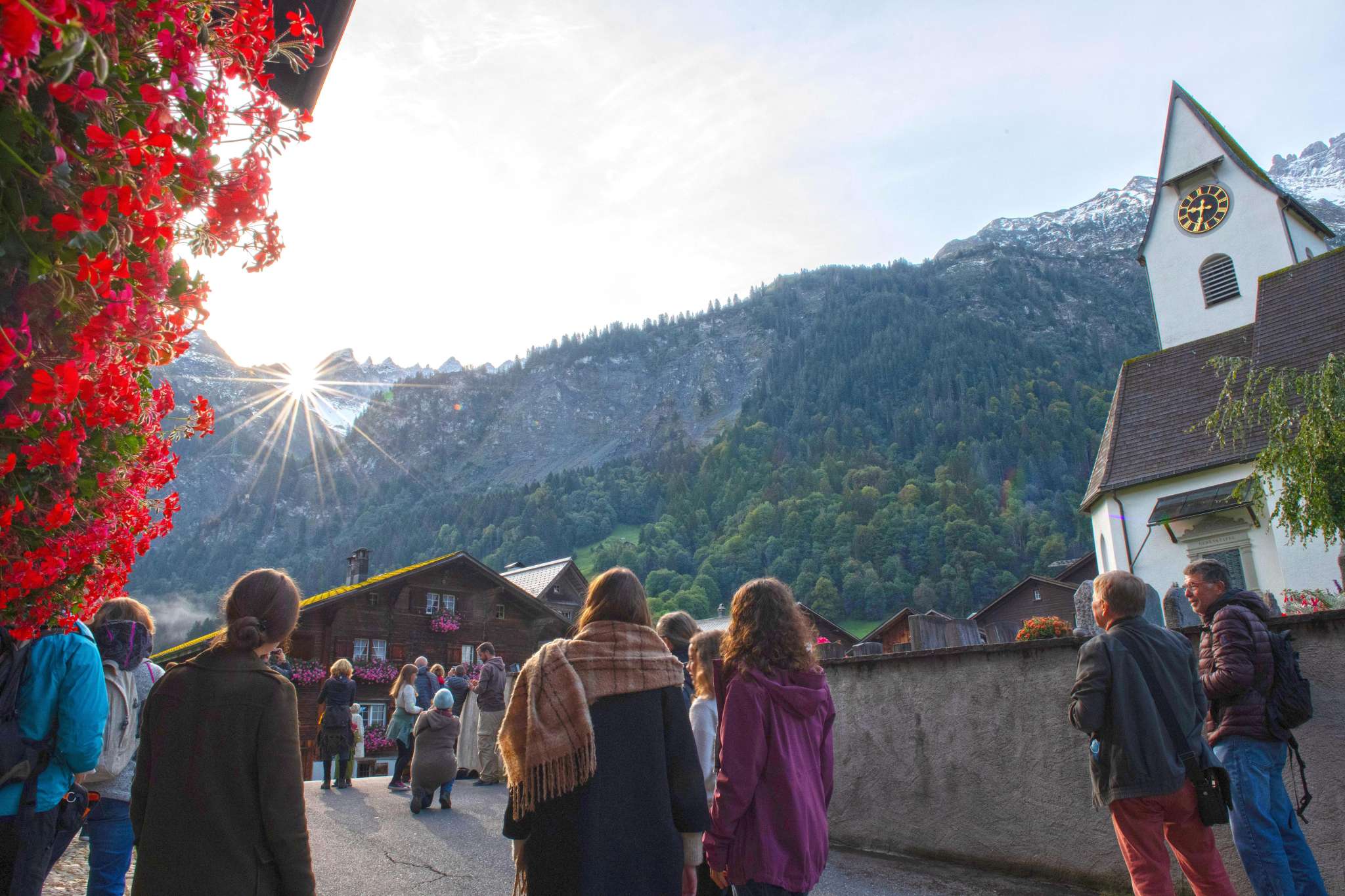 Es ist ein magisches Schauspiel, wenn die Sonne kurz vor dem eigentlichen Sonnenaufgang ihre Strahlen durch das Martinsloch auf den Turm der spätgotischen Kirche im Glarnerland wirft. Das Ereignis dauert nur wenige Minuten, dann verschwindet die Sonne, um kurz darauf endgültig über den Tschingelhörnern aufzugehen. Während zwei Tagen ist dieses Naturschauspiel von Licht und Schatten zu beobachten und mit ein bisschen Wetterglück strahlt die Sonne am 13. März um exakt 08.50 Uhr direkt auf die Kirche von Elm. Am 14. März wiederholt sich das Ereignis um 08.48 Uhr. Treffpunkt jeweils ab 08.15 Uhr bei der Kirche in Elm. Parkplätze sind beim Gemeindehaus oder bei den Sportbahnen Elm vorhanden. Die Sonne ist auch davor und danach auf der Dorfstrasse zu sehen. Die Standorte werden jeweils markiert. Mehr Infos zu den genauen Zeiten: www.elm.ch/sonnenereignis.