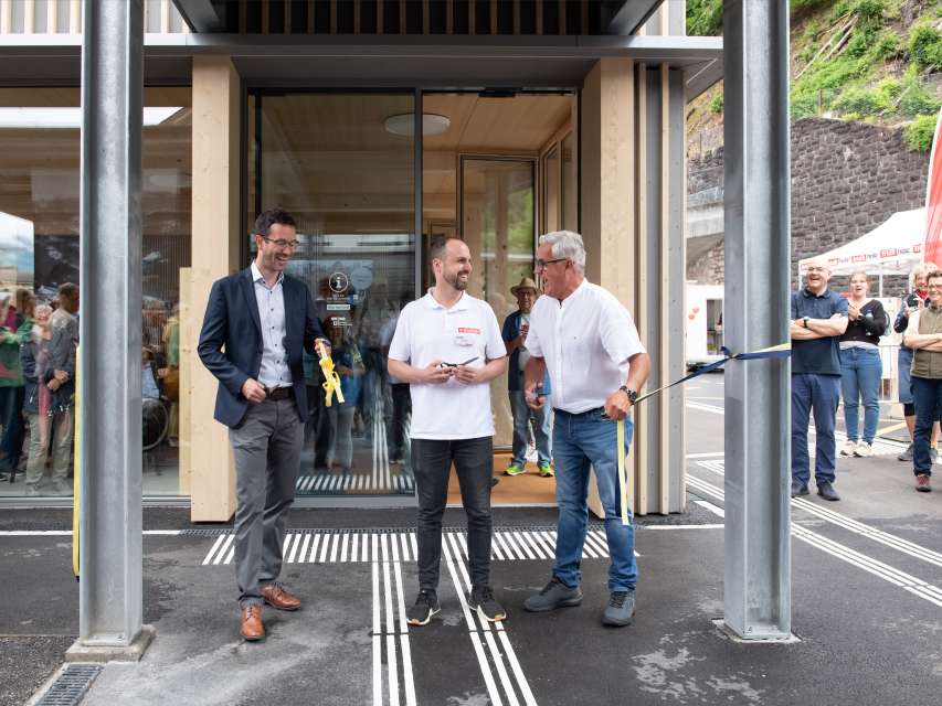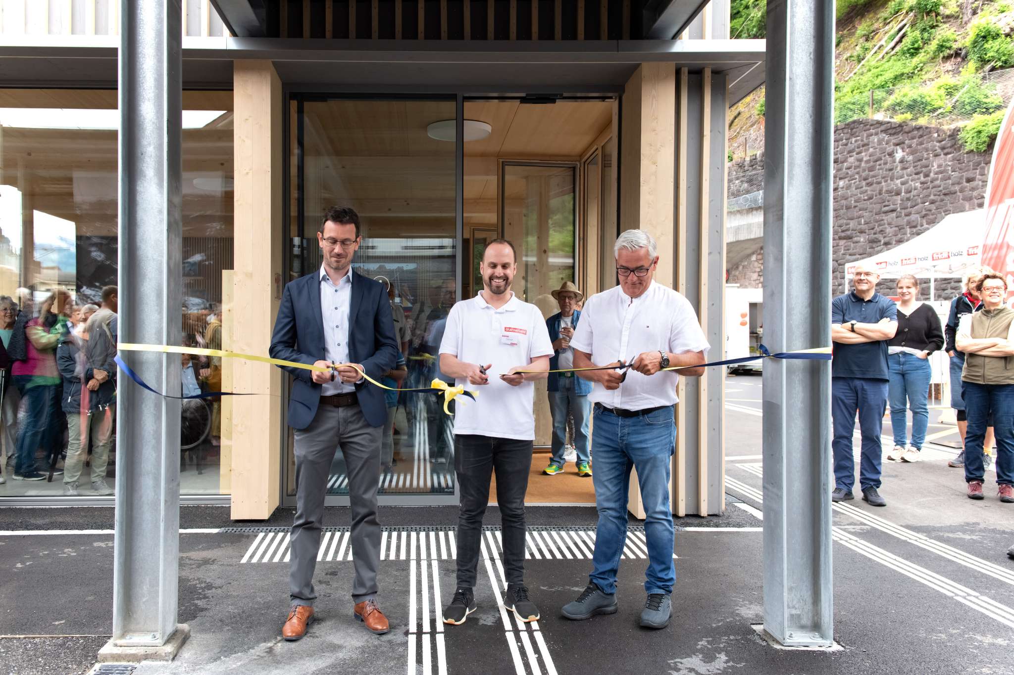 Schwanden, 23. Juni 2024 – Es ist vollbracht, die Tourismus-Drehscheibe am Bahnhof Schwanden ist eröffnet. Der neue Hingucker mit integrierter Gäste-Info, kleinem Café-Angebot, einem Shop mit Glarner Produkten, Büroräumlichkeiten für die Tourismusorganisation VISIT Glarnerland und Arbeitsplätzen im Co-Working-Gedanken sowie einem öffentlich nutzbaren Konferenzraum und Dachterrasse und einem Aufenthaltsraum für die Autobetriebe Sernftal wurde am vergangenen Samstag feierlich eingeweiht.